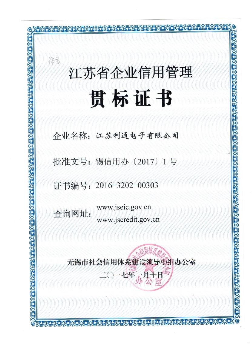 江蘇省企業(yè)信用管理貫標證書<br /> <br />